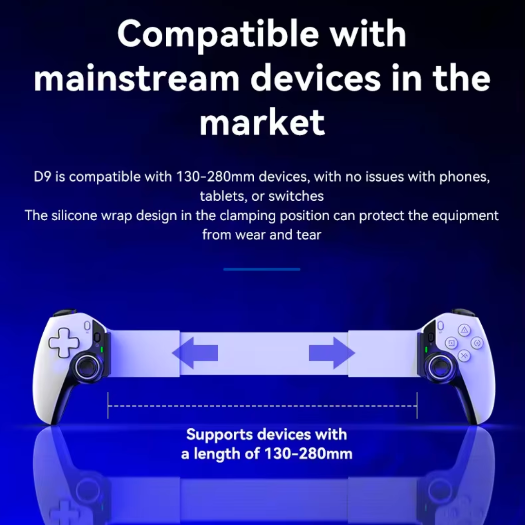 🎮 GameSnap™ Stretchable from 130mm to 280mm, it easily fits most smartphones and tablets. Making it perfect for gaming on the go.
